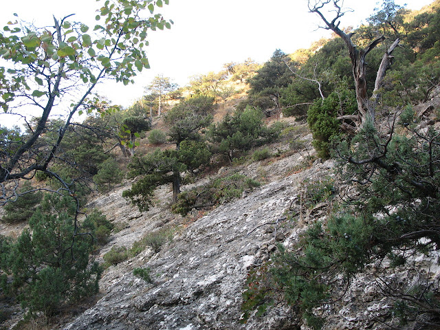 Знизу стіни ущелини вже не виглядали такими крутими для пішого туриста і геть поросли ялівцем: