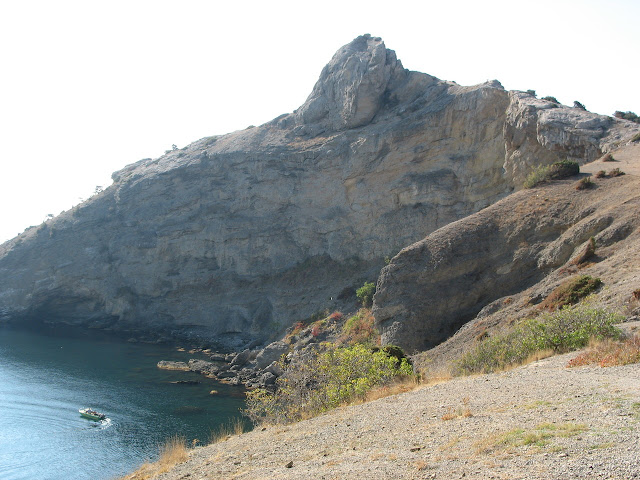 Ліворуч - вхід на ту частину Голіцинської стежки, яка веде до гроту Шаляпіна, і потім далі - аж до набережної Нового Світу. Праворуч стежка теж заходить, як траверс над бухтою, але спуску до пляжу вона не має: