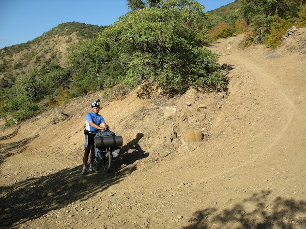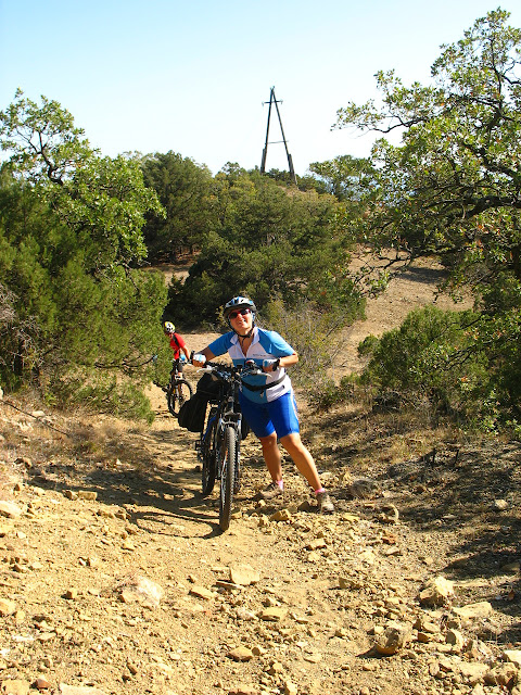 Перші хвилини різкого підйому одразу налаштували нас на боротьбу. Сипуче каміння не давало можливості тримати завантажений велосипед вертикально, а при цьому його іще треба було пхати угору. Короче - задоволення іще те!