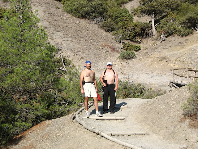 Після завершення пішого маршруту ми спустилися до моря, скупалися у Зеленій бухті і у зв'язку із браком часу рушили додому. Наших господарів не було вдома поки ми приймали душ і збиралися. Потім ми їм передзвонили і попросили повернутися. Ми мали розрахуватися і спитати дорогу через гору Сандик.