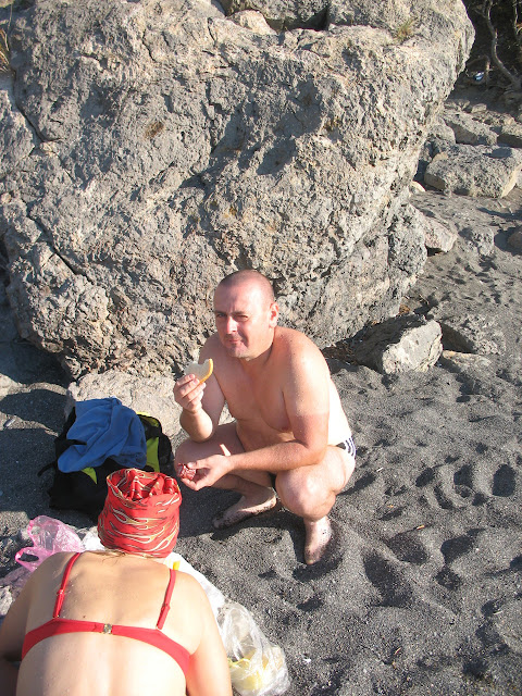 І ось нарешті ми дісталися Царського пляжу. Тут було дійсно дивно. Увечері господарі нам розповідали, що зазвичай ті люди, що приходять на пляж розмовляють у пів голоса. Так було переважно і цього дня. Люди ніби занурювалися у думки гуляючи уздовж моря або купаючись у ньому. Цей настрій передався і нам.