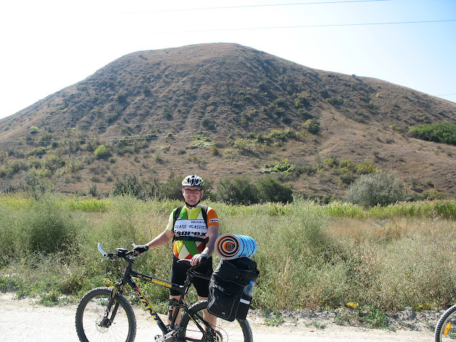 Нарешті десь біля одинадцятої години після того як всі речі були упаковані, а велосипеди - полагоджені нам вдалося дуже акуратно (щоби знову не проколоти колеса) вивести велосипеди на накатану дорогу і рушити у напрямку Коктебелю. По дорозі нам трапилося трохи більше за розміром озеро, яке ми бачили учора ввечері у промінях сонця. Воно було повне води, і в ньому можна покупатися після напруженого велодня. Тому наступного разу якщо я буду у цих місцях, треба буде зупинятися біля нього.