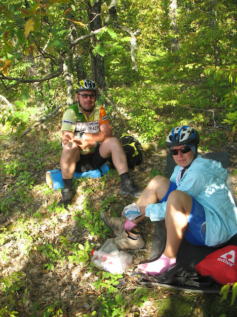 Щоранку ми перевіряли свої колеса на проколи. Цього ранку на додаток до Наталкиного велосипеда ушкоджень зазнав і велосипед Сергія. Треба було клеїтися.