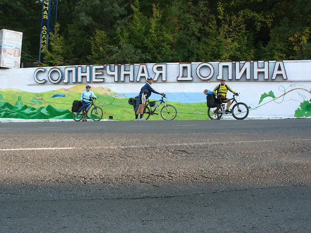 От скалы начинается 800-от метровый, прямой и пологий спуск к дорожной «развилке»: направо – к перевалу «Сикор», (на Судак), а налево и вниз – в Солнечную Долину, (на жаргоне – «Солидол»). От развилки до «Сикора» – немногим более 2-х км. Для «крутых» веломанов – самое то, что надо! - (ножки «покачать»...). Менее подготовленной публике, советую проехать через «Солидол». Проведенной нами «разведкой» установлено, что от поселка Солнечная долина через села Богатовка и Миндальное до самого берега Судакской бухты – хорошая асфальтированная дорога. В конце села Богатовка, где дорога поворачивает влево, на юг, вы увидите вполне современный небольшой магазинчик, а за ним, на перпендикулярно выходящей к дороге улице, - обнаружите колодец с пресной водой. Дальше по этой же улице – еще один магазин...